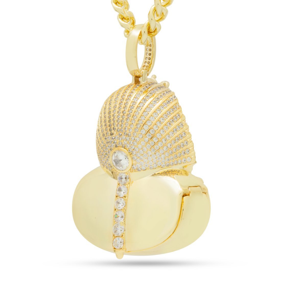 Although King Tut was a pharaoh in an Egyptian dynasty, he is widely recognized for the tomb he was buried in. Available in 14K Gold and white gold, we have replicated King Tut's tomb to include a secret stash to hide your "valuables." This new version of the pendant has more baguette cut VVS Diamond Simulates on the King's garment. Each pendant is paired with a 5mm, 20" Miami Cuban chain.