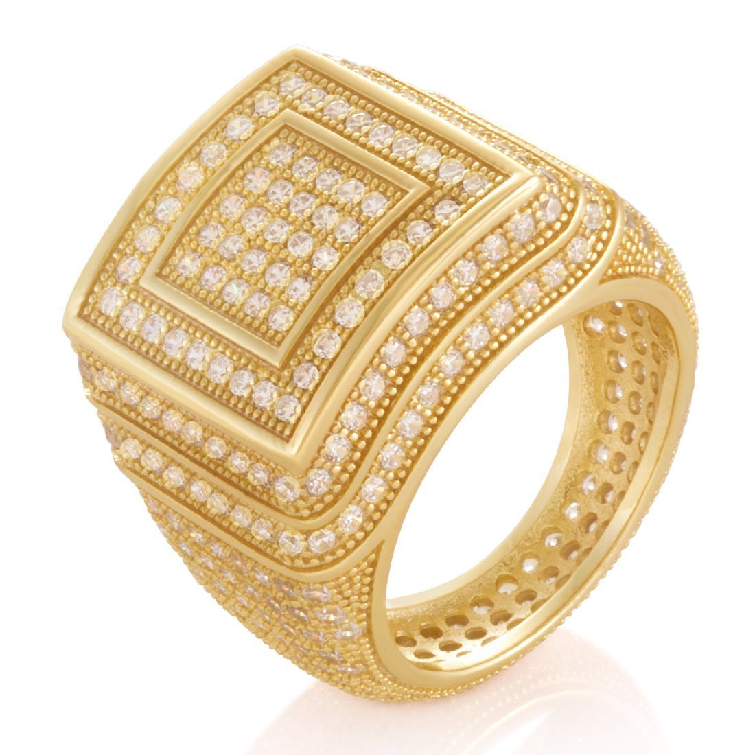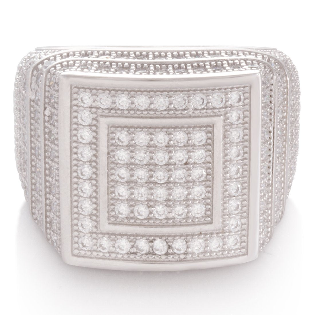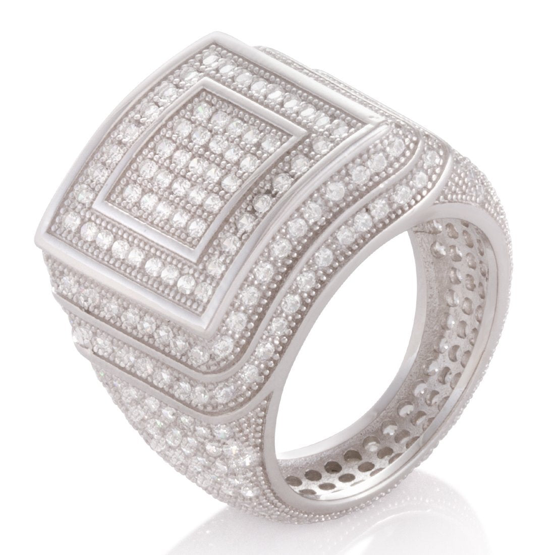 Made from solid .925 Sterling Silver, The Elevated Sterling Silver Ring provides a stunning display of symmetrical design. Each ring features handset VVS Diamond Simulate stones that cover the exterior. Available in 14K gold plating and white gold plating for an unrivaled look.