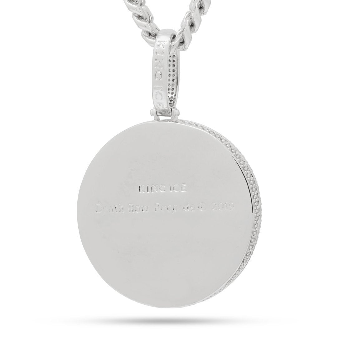 Part of the second official King Ice x Death Row collab drop, King Ice introduces the new Medallion Spinner. Paying tribute to the spinner culture in hip-hop, the medallion features the infamous Death Row Records logo with a full 3-D design on a spinning plate flooded with CZ stones. Available in 14K Gold and white gold plating, the entire pendant is iced with more than 700 handset CZ stones for a bright finish. Each pendant is paired with an 8mm, 20" Miami Cuban chain.