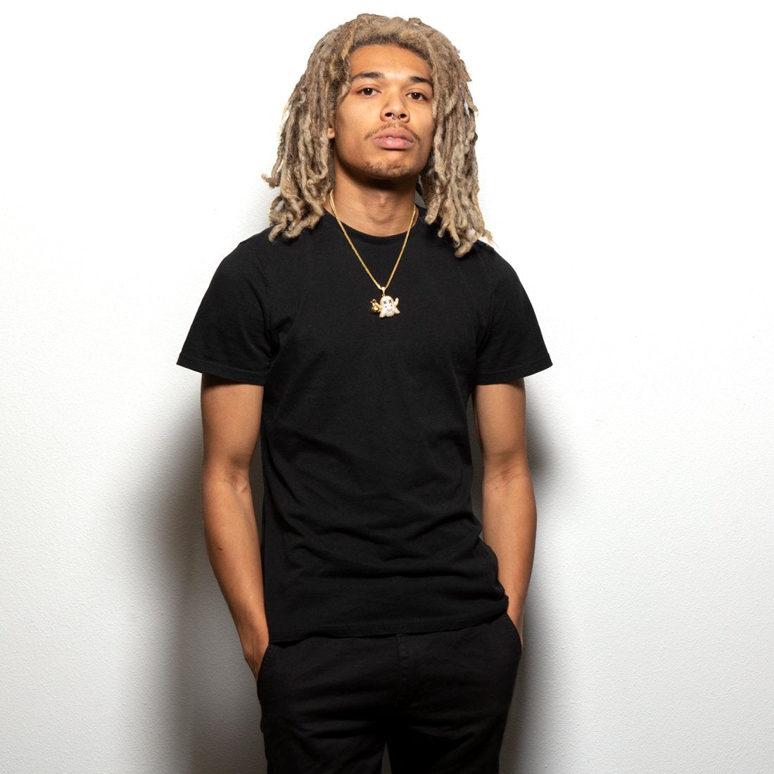 The recognized money bag emoji and the ghost emoji have combined forces to form the new Money Boo Emoji Necklace by King Ice. Available in 14K Gold plating and white gold plating, the Money Boo necklace uses VVS Diamond Simulates to decorate the emoji's expression and surface. The money bag has a 3D design for an extra pop. Each necklaces is paired with a 2.5mm, 20" Franco Chain.