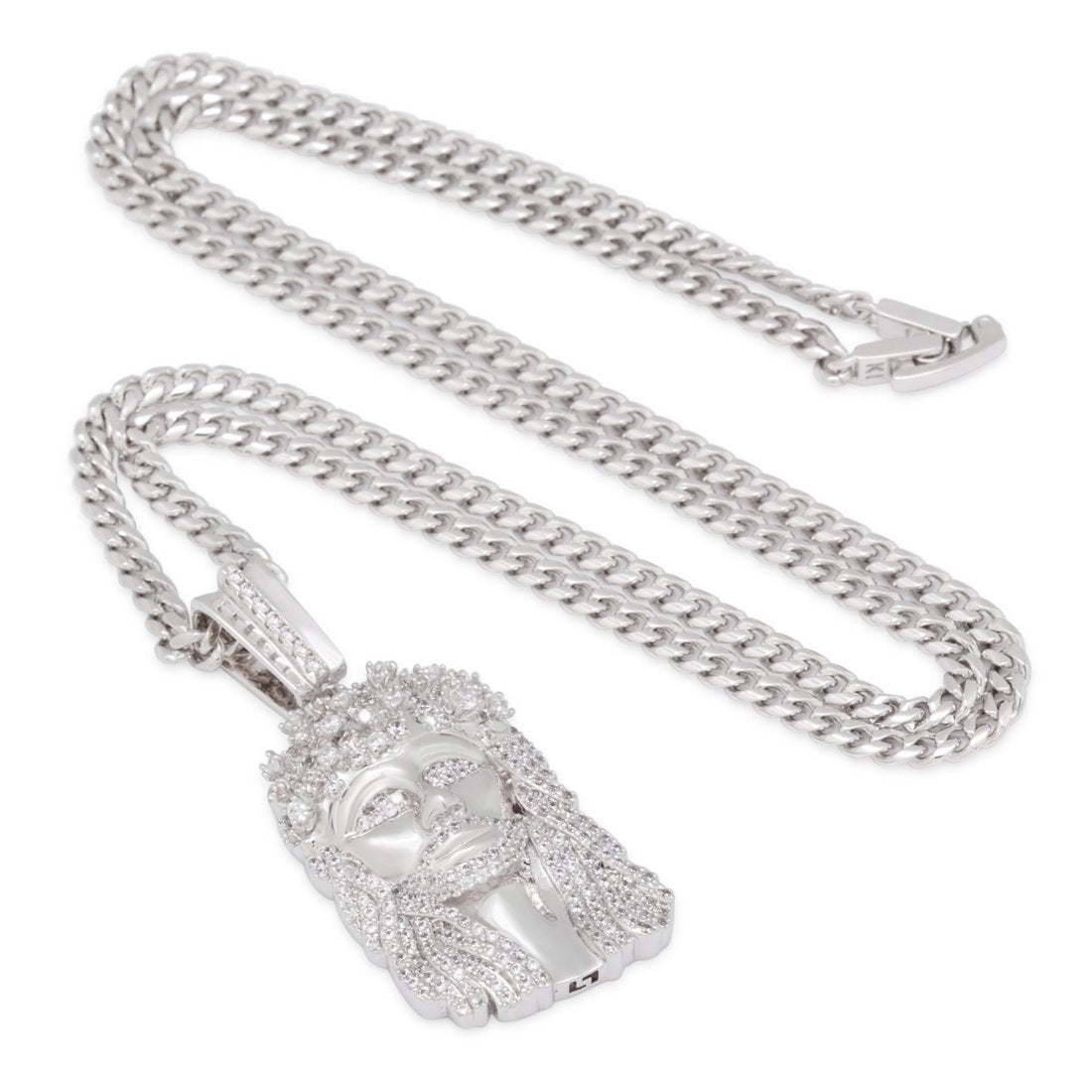 Inspired by the original design, the Biggie Jesus necklace is a recreation of the Jesus piece he used to wear. The Biggie Jesus piece comes in three sizes that best fits your style of street wear. In addition, each pendant is finished with 14K Gold plating or white gold plating and VVS Diamond Simulate stones for a high quality look and feel. A 5mm 20" Stainless Steel Miami Cuban Curb Chain is paired with each necklace.