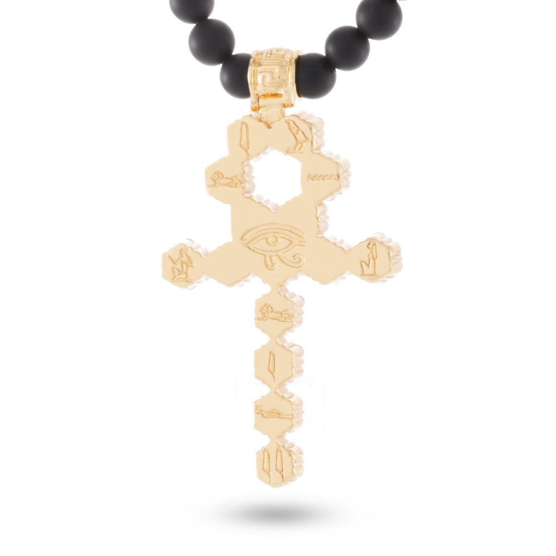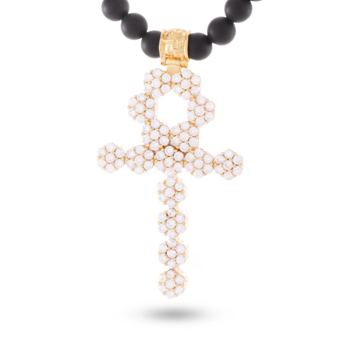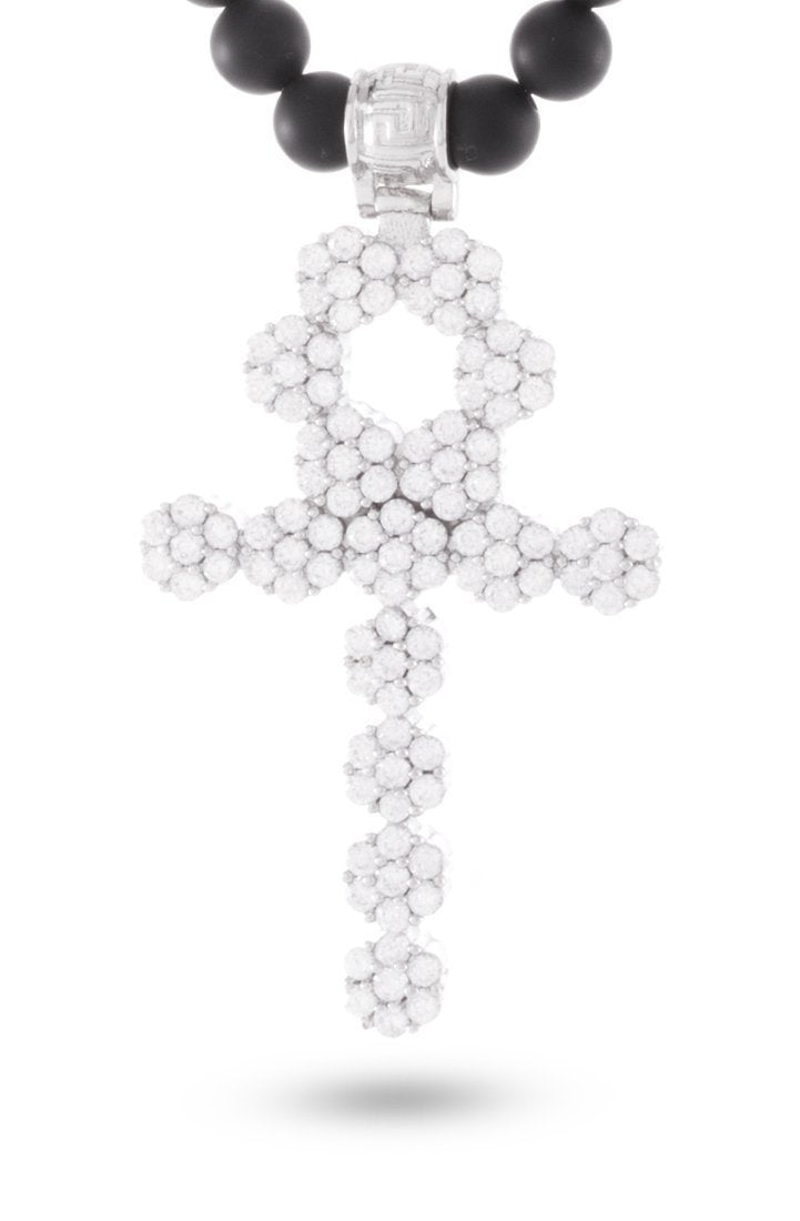 Founded in ancient Egypt, the Ankh Cross, known as rux ansata symbolized life. Now, this ancient Egyptian hieroglyphic returns in a new, re-imagined form. Each piece is available in 14K gold plating or white gold plating and is iced with VVS Diamond Simulate stones.